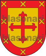 Otros: En campo de oro, una cruz de azur, floreteada y endentada. Bordura de gules, con ocho calderas de oro.