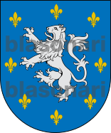 En campo de azur, un león, de plata, orlado de ocho lises de oro.