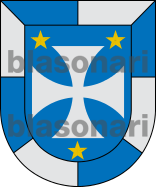 Los Condes de Bernar traen: En campo de azur, una cruz paté de plata, acompañada de tres estrellas de oro. Bordura componada de plata y azur.
