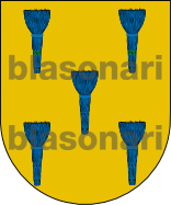 Luego fueron acrecentadas esas armas en el siguiente escudo partido, organizado así: 1º, en campo de oro, un roble de sinople, y 2º, en campo de oro, cinco escobas de azur, puestas en sotuer.