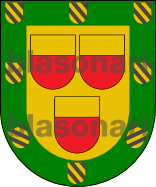 En campo de oro, tres escudetes, de gules, con el jefe de oro, bien ordenados. Bordura de sinople con ocho escudetes de oro, bandados de sable.