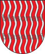 En campo de gules, ocho palos de plata ondeados.