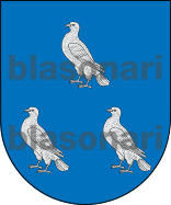 En campo de azur, tres palomas de plata, bien ordenadas.