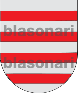 En campo de plata, cuatro fajas de gules.