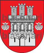 Otros: En gules, un castillo de oro, acostado de dos veneras de oro, una a cada lado.