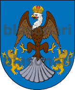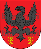 Otros: En campo de gules, un águila de sable, acostada, bajo las alas, de dos leones rampantes, de oro.