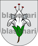 En campo de plata, una perla, de azur, acompañada de tres coronas, de oro (sic).
