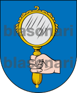 Otros ostentan: En campo de azur, con tres espejos de plata, con el mango y la guarnición de sinople y puestos en triángulo.