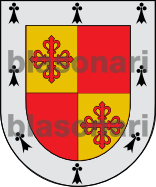 Otros Muñoz, traen: Escudo cuartelado: 1º y 4º, de oro, una cruz flordelisada, de gules, y 2º y 3º de gules; bordura general de plata, con ocho armiños, de sable.