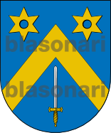 Originario de Término: En campo de sinople, dos cigüeñas, de su color, puestas en faja; bordura de azur, con tres lises, de oro.