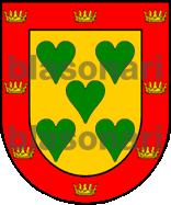 Otros traen: En campo de oro, una árbol, al natural, con un perro, de su color natural, manchado de sable, atravesado al tronco.
