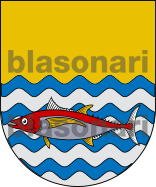 En campo de oro, una faja ondeada de azur, cargada de un pez de plata. El jefe de gules con una cruz de plata a todo trance.