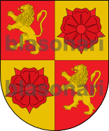 Julio de Atienza, en su "Nobiliario Español" recoge las siguientes: Escudo cortado: 1º, en campo de gules, un león andante, de plata; y 2º, en campo de oro, una rosa, de gules.