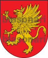 Otros: En campo de azur, seis roeles de plata y un grifo rampante de oro.
