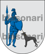 Otros de Castilla, traen: En campo de plata, un guerrero, de azur, con un lebrel, de sable, atado por una cadena.