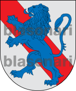 Otros de Ribadesella (Asturias) traen: En campo de gules, una banda de plata, y brochante, un león rampante de azur.