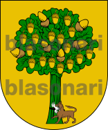 Otros: En oro, un árbol de sinople, terrasado de lo mismo y con un jabalí pasante a su tronco. Bordura jaquelada de oro y gules.