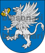 Otros traen: En campo de azur, un grifo rampante de plata.