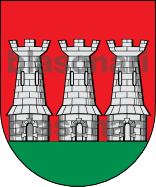 Los de Sevilla y Argentina traen: En campo de gules, tres torre de plata, puestas en faja, sobre terrasa de sinople.