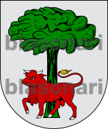 Los de Galicia traen: En campo de plata, un pino y arrimado a él un toro.